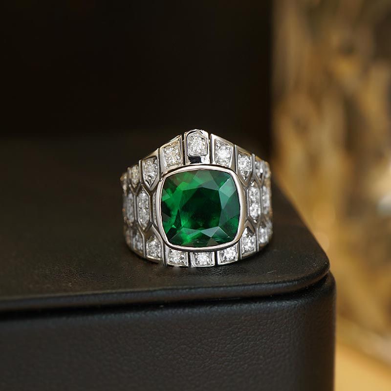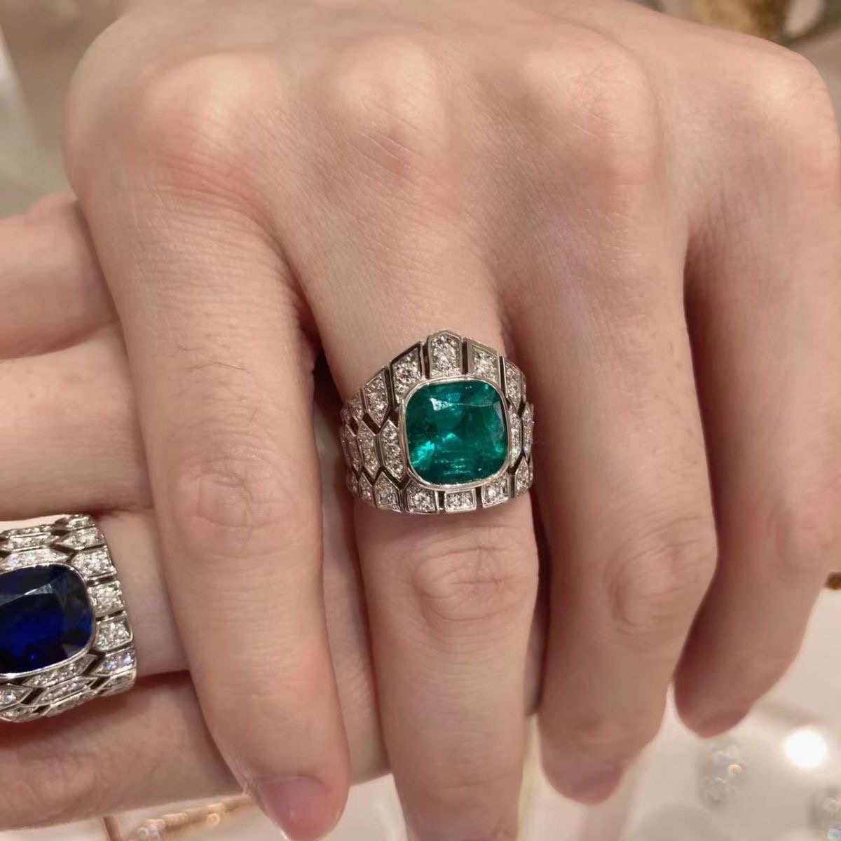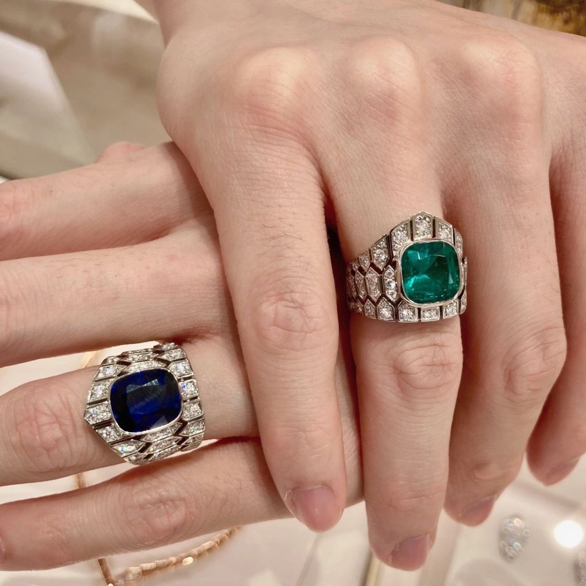 Carved gold openwork lace double-color gold diamond red corundum colorful ring