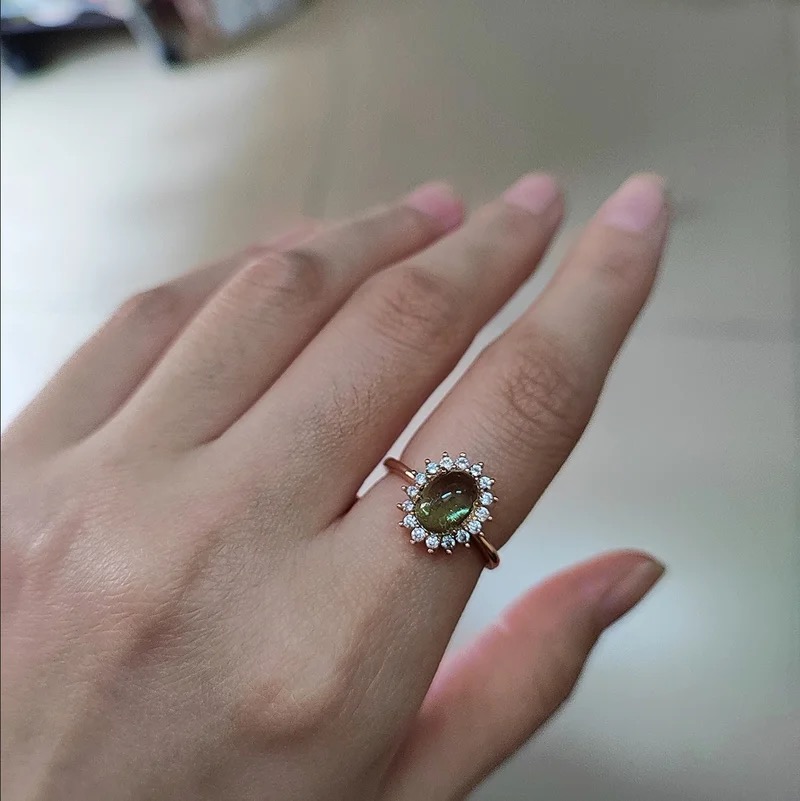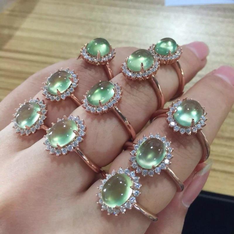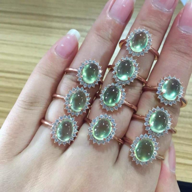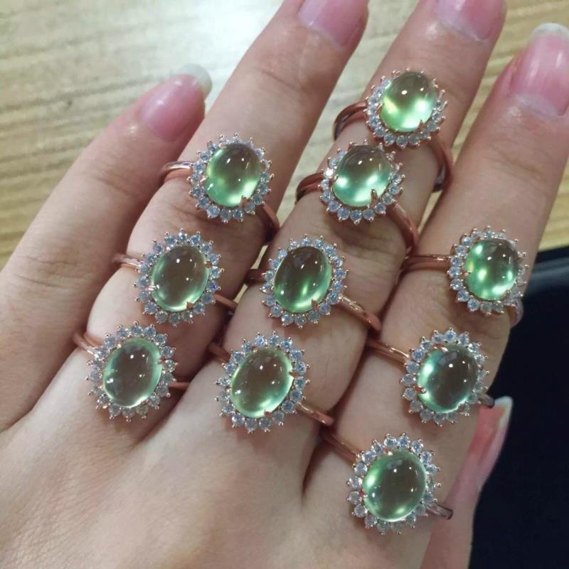 Natural fluorescent prehnite ring S925 sterling silver quantity