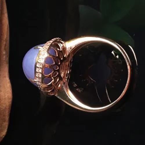 Carved gold hand-drawn moonstone French antique two-color gold lace ring